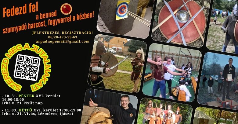 XVI. ker. Irha u. 21. gyerek és fifi hagyományőrző foglalkozás. 17:00-19:00 HÉTFŐ (Íjászat, vívás, kézműves).